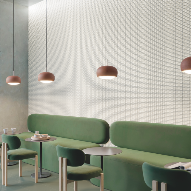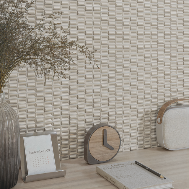 Each piece is composed of small 3D tesserae, capable of transforming any space.
