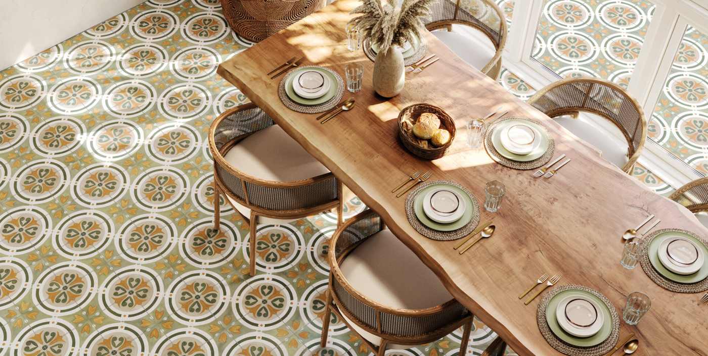 Inspired by autumnal warmth and vintage charm, Autumn offers a hydraulic design that combines tradition and modernity. Available in two tones — green and taupe — this collection captures the essence of classic mosaics, adding a nostalgic and sophisticated touch to any space. Autumn is the perfect choice for those seeking a cozy atmosphere, while also enjoying the advantages of a product made with the latest technological advances.