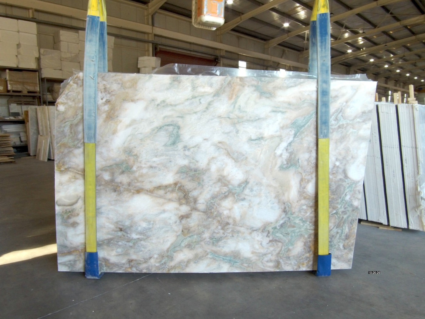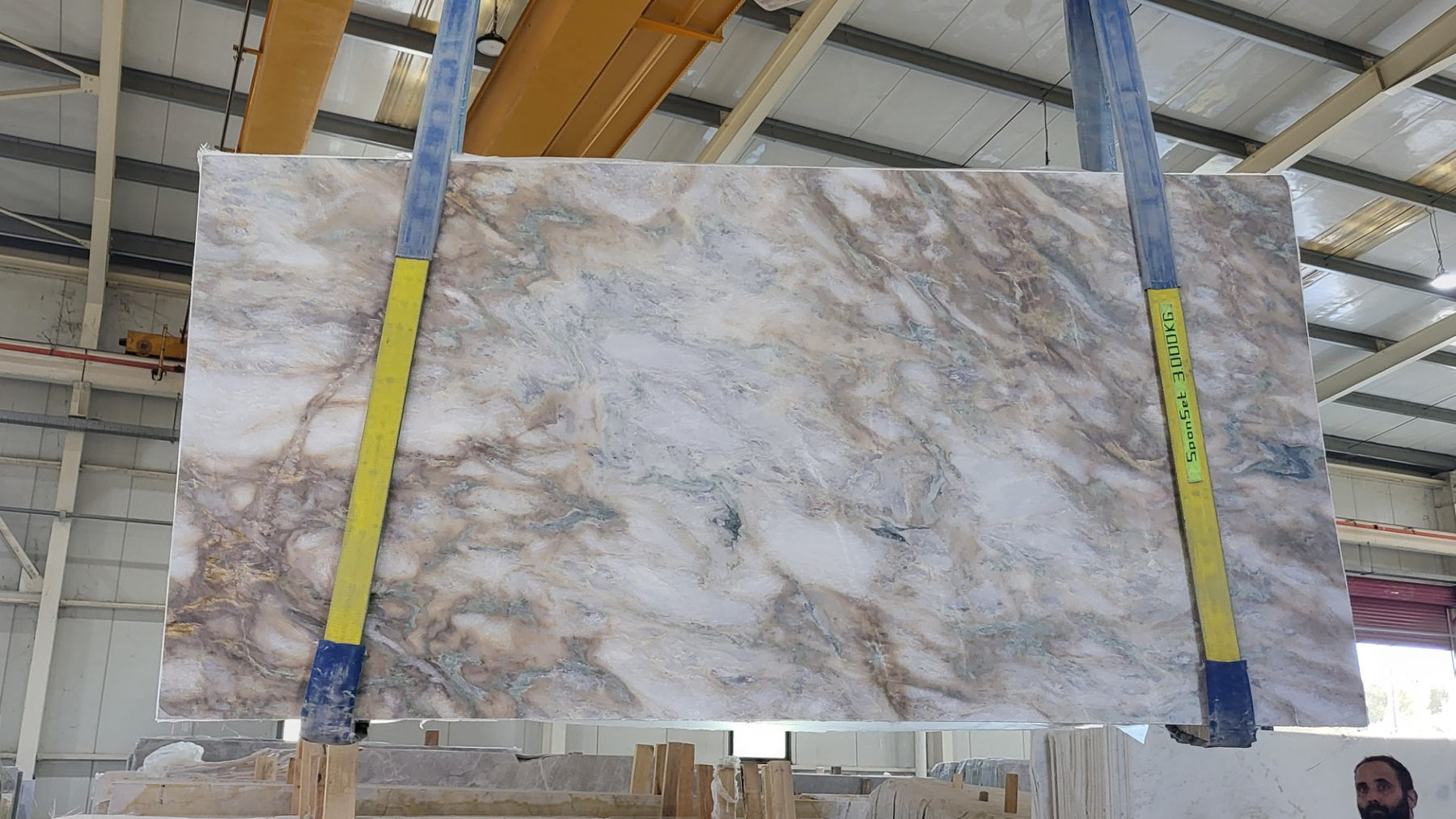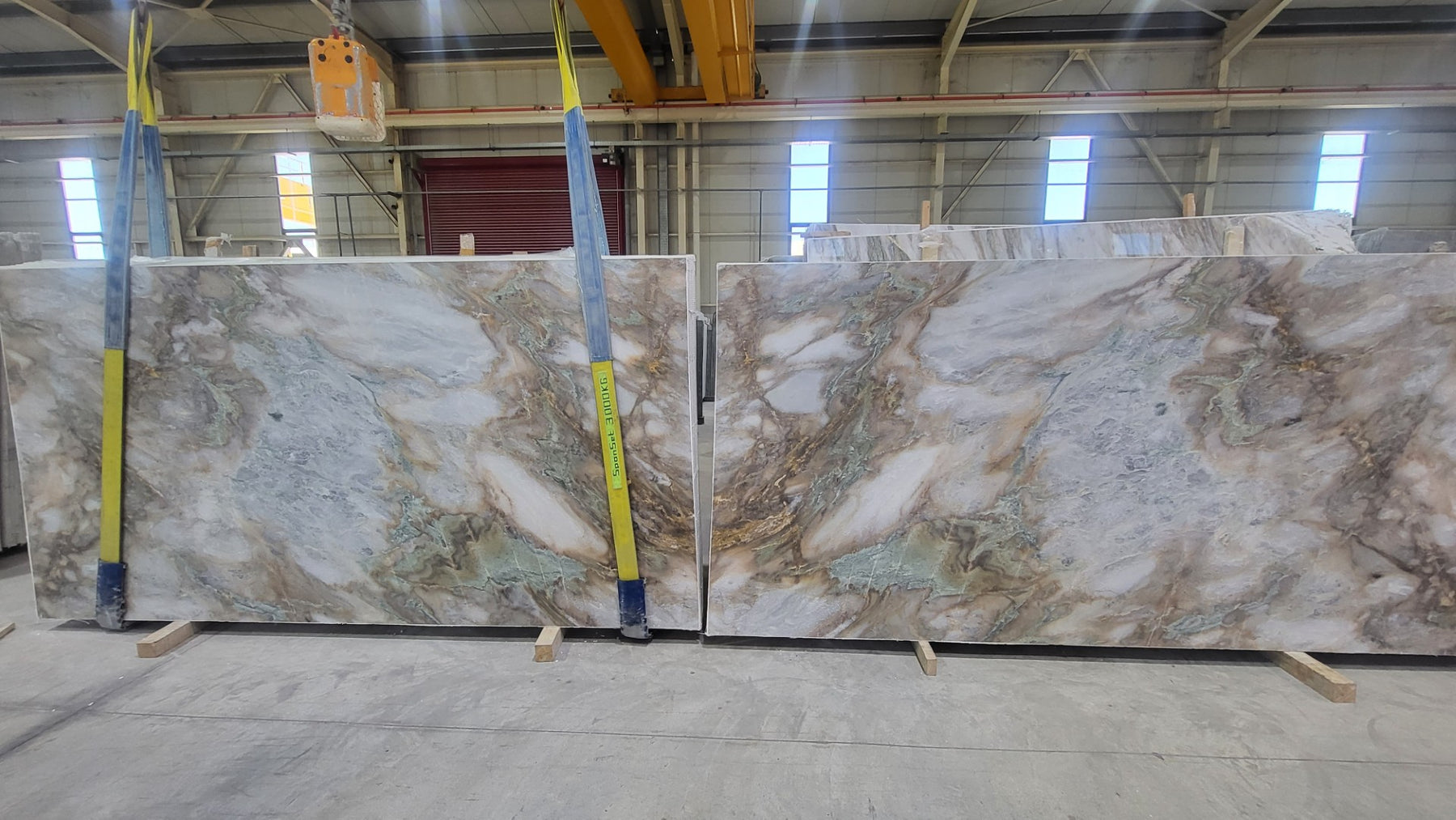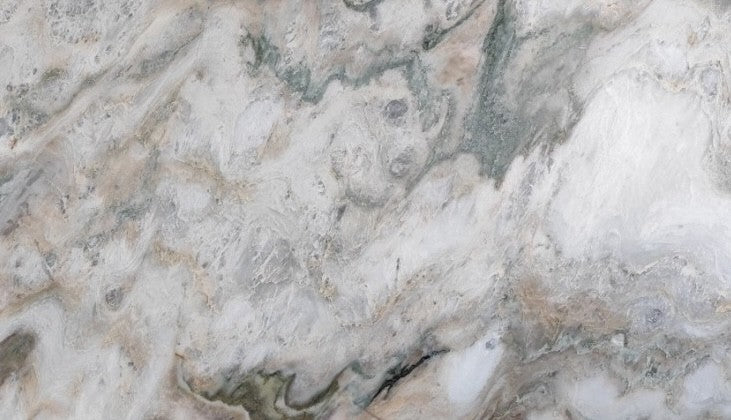 A natural masterpiece carved by time, Iliad Green Marble features a poetic blend of soft whites, earthy taupes, misty greens, and hints of warm gold. Its swirling, watercolor-like movement creates the look of abstract art across each slab—making it a stunning choice for luxury interiors that seek both elegance and uniqueness.