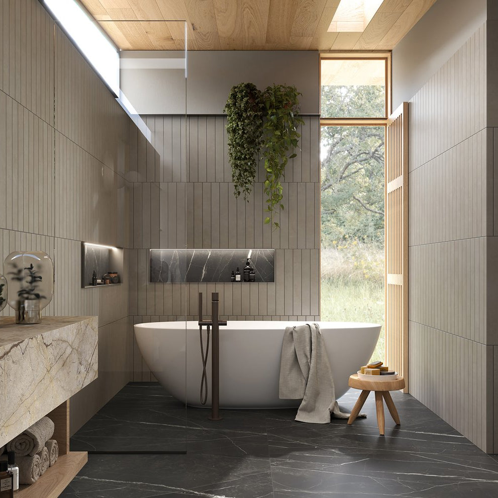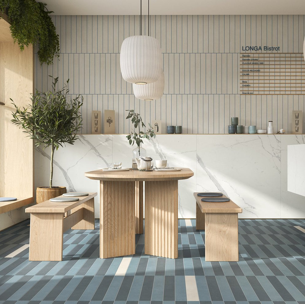 Lapasetta is a cement-inspired porcelain collection defined by soft, natural pigments and a refined artisanal character. Its elongated format allows for versatile laying patterns across floors and walls, creating harmonious, expressive surfaces that adapt seamlessly to both linear and curved spaces.