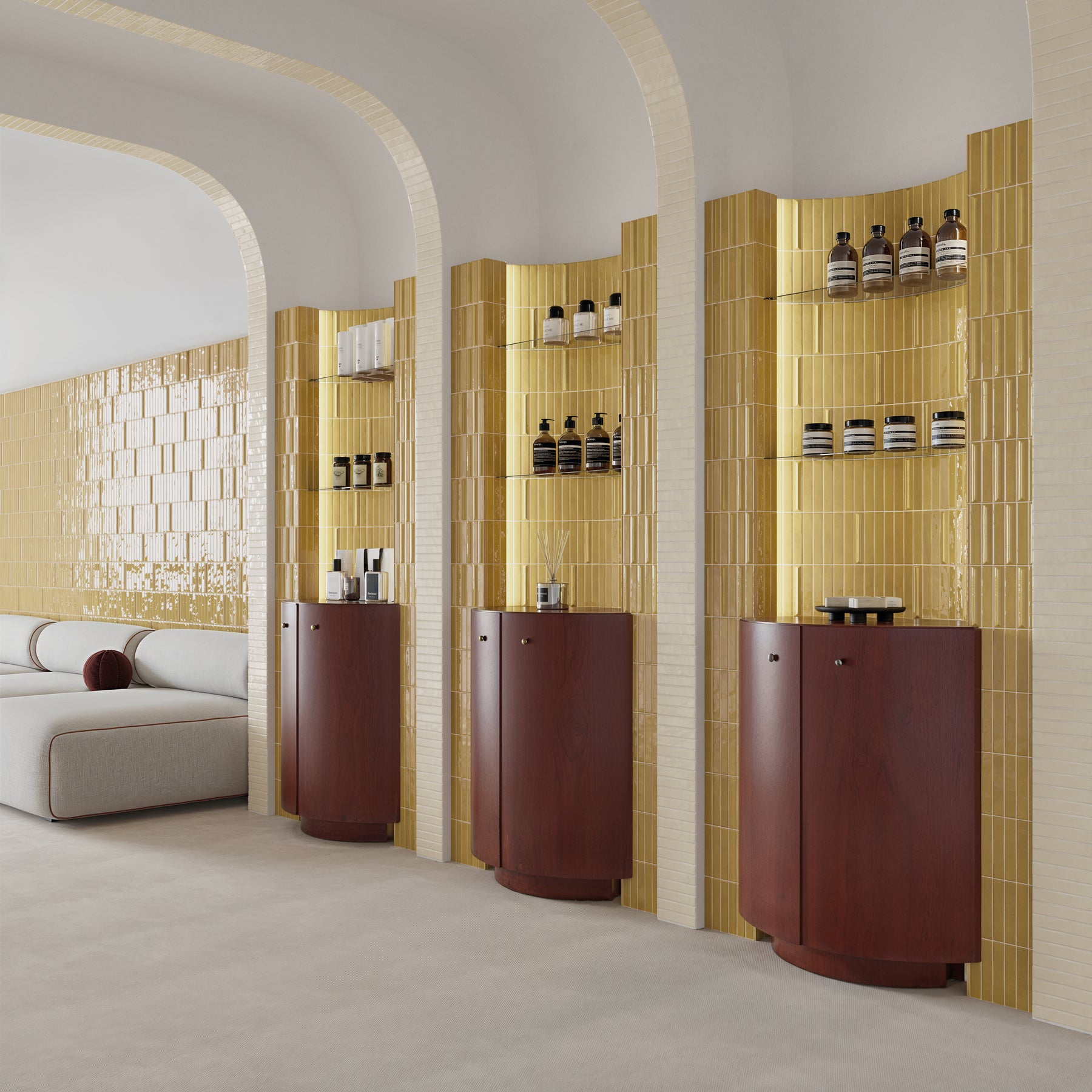 Its elongated and elegant formats, paired with a color palette inspired by precious stones, evoke timeless, luxury and the delicacy of noble materials.