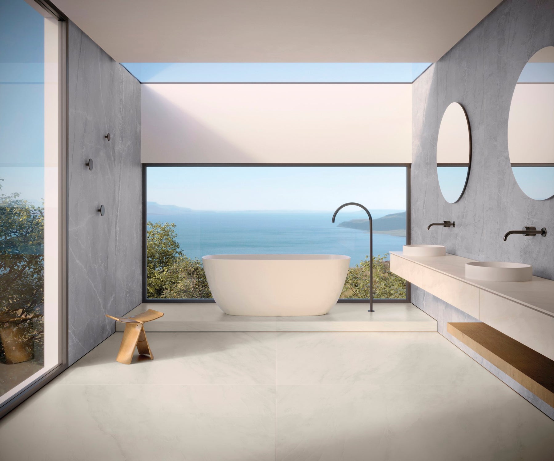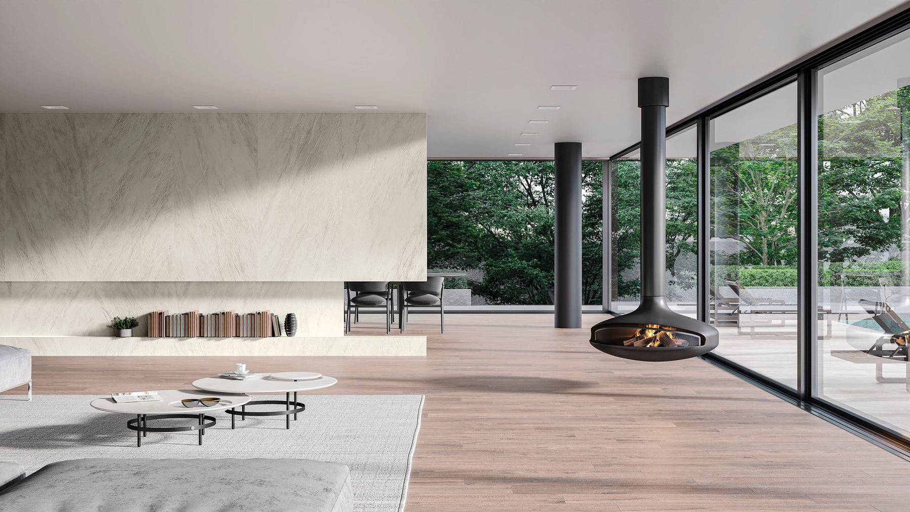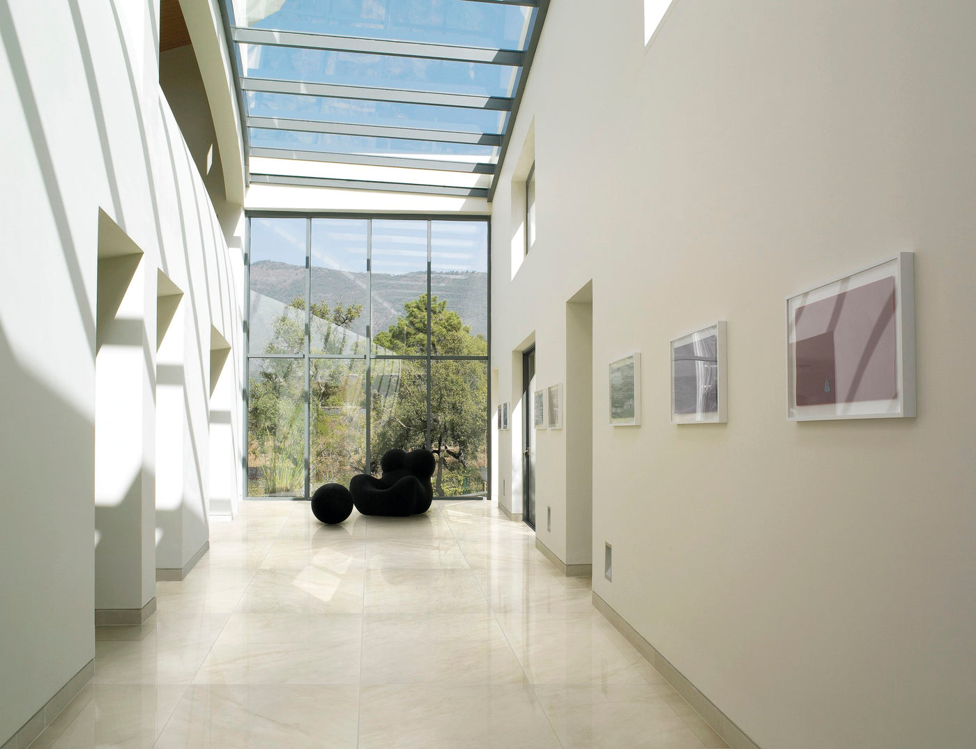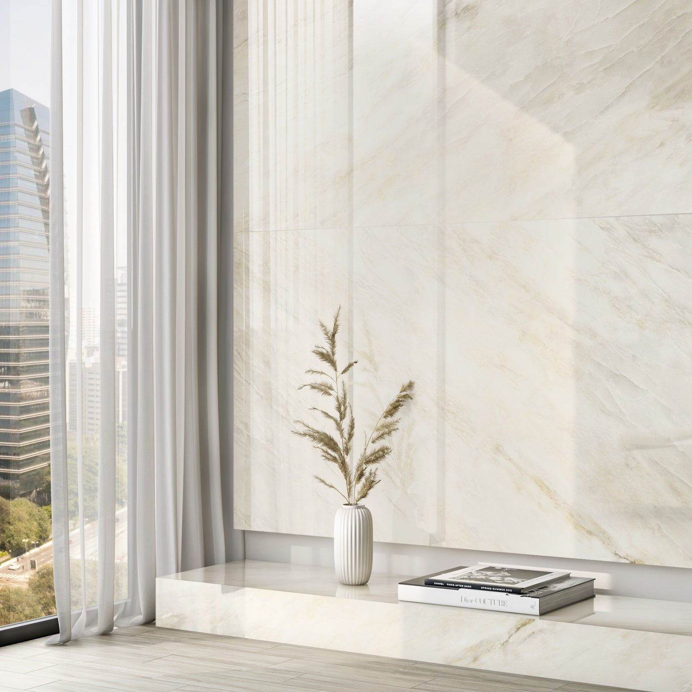 Unica interprets a rare version of such marble by using extremely clear tones punctuated by the transparency that defines organic drawings.