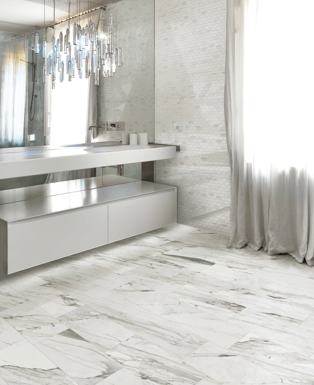 Introduce the elegant touch of polished marble into your design with the Mighty collection. This sleek floor & wall tile combines the timeless, classic look of marble with the low-maintenance and durability of porcelain as you plan your next eye-catching residential or commercial project.