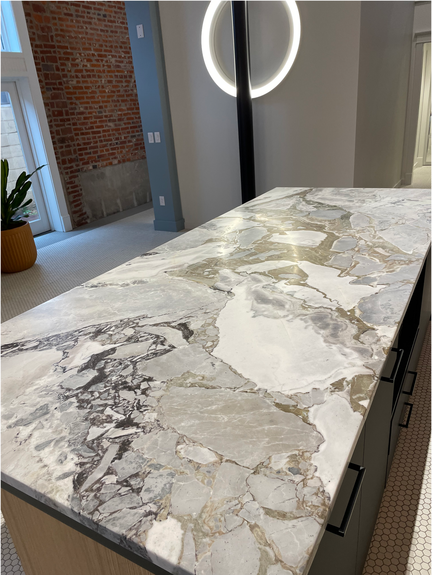 Rich with character and contrast, Denver Mix combines a warm white base with bold, painterly strokes of gray, taupe, and charcoal. This dynamic marble offers a striking visual depth that feels both earthy and refined. Each slab showcases unique movement and tone, making it ideal for statement applications in modern and rustic spaces alike. Its natural variation brings a sense of artistry and authenticity to any environment.