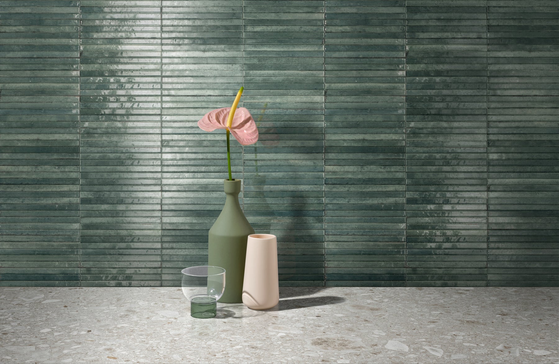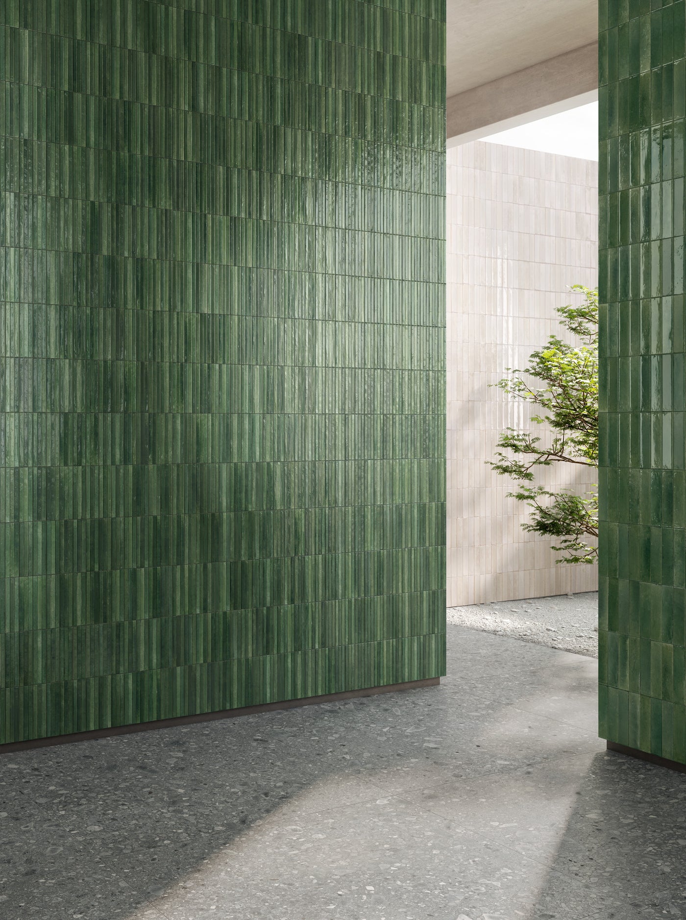 The range of the Voir collection, made unique by its tiny flaws and subtle variations in color that undermine its material, is now extended with three new shades and a decor with a relief structure applied to selected colored plain tiles. Memory and tradition are embodied in exquisite small surfaces reinterpreted in contemporary taste. Hand-craftsmanship and bright glazes create interplays of light on surfaces that add vibrant warmth and personality to interiors.