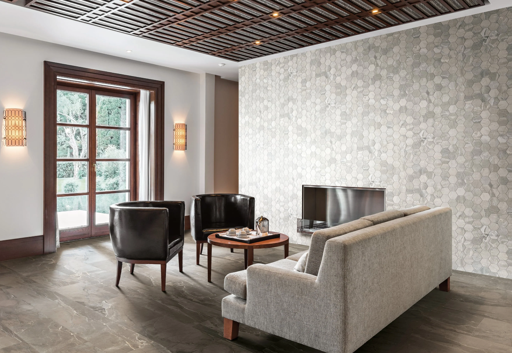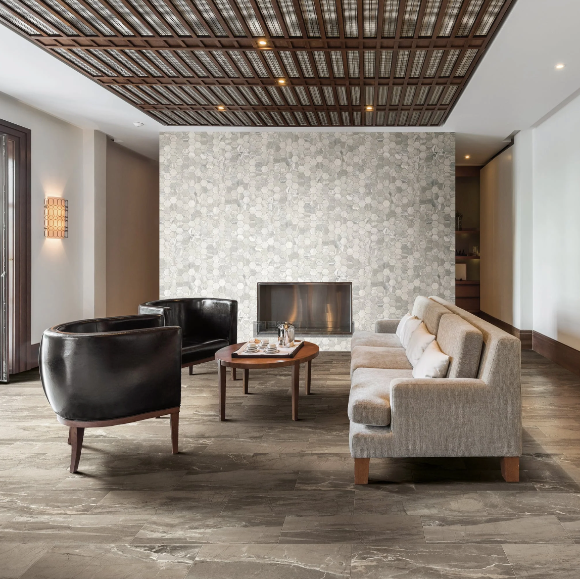 Inspired by a large prehistoric ocean that once covered the Moroccan Sahara more than 380 million years ago, we present Complete. The vivid movements within Complete mimic the rich sea life once present in the now desolate and austere landscape. Pressure and heat helped cultivate the striking beauty of Erfoud fossils, much like the pressure and heat necessary for creating beautiful porcelain tile. Designers will delight in the intense complexity of the tile.