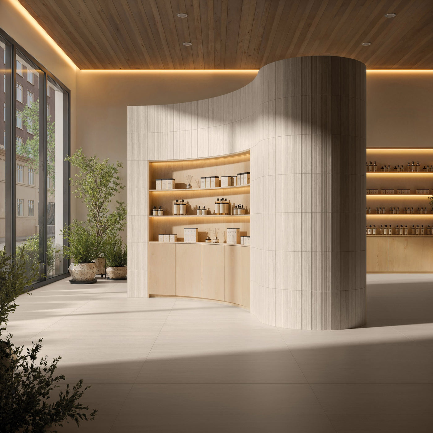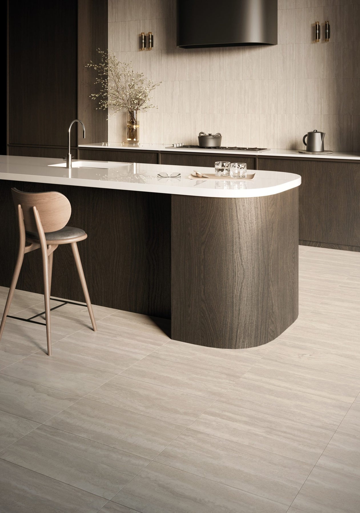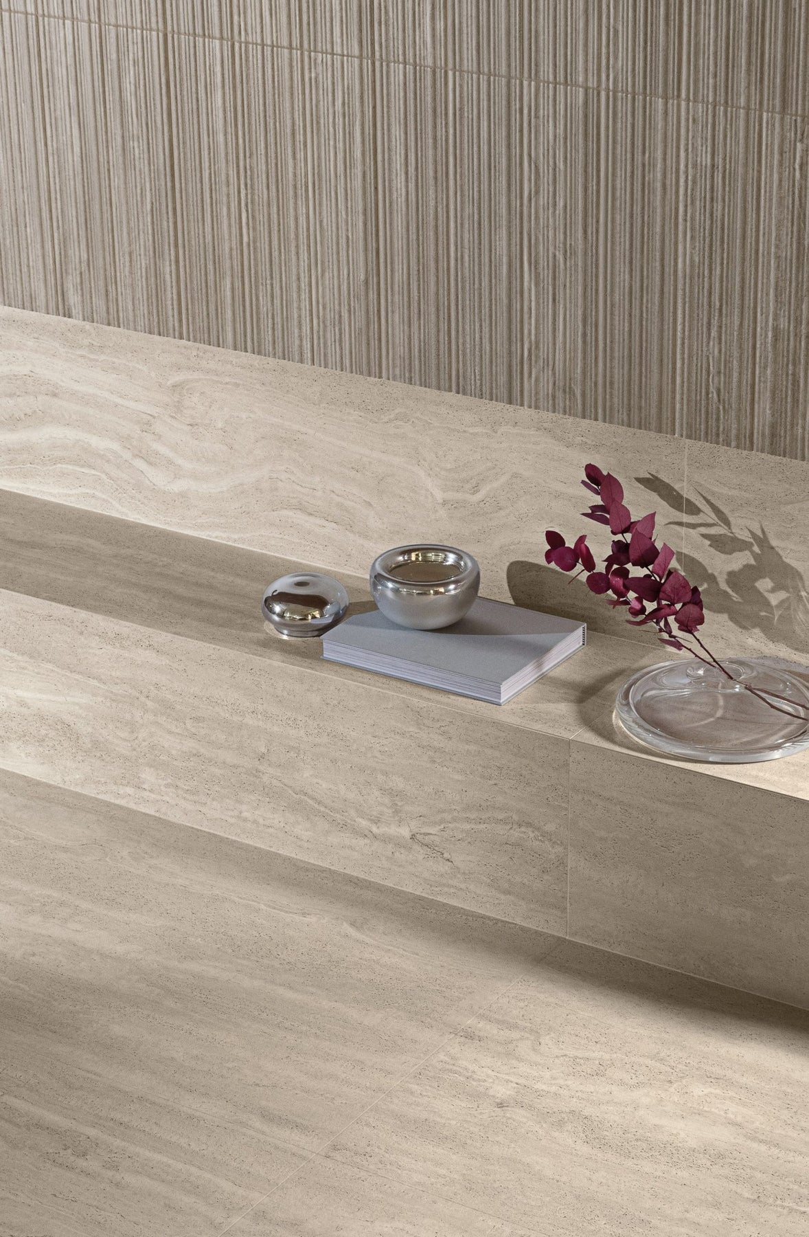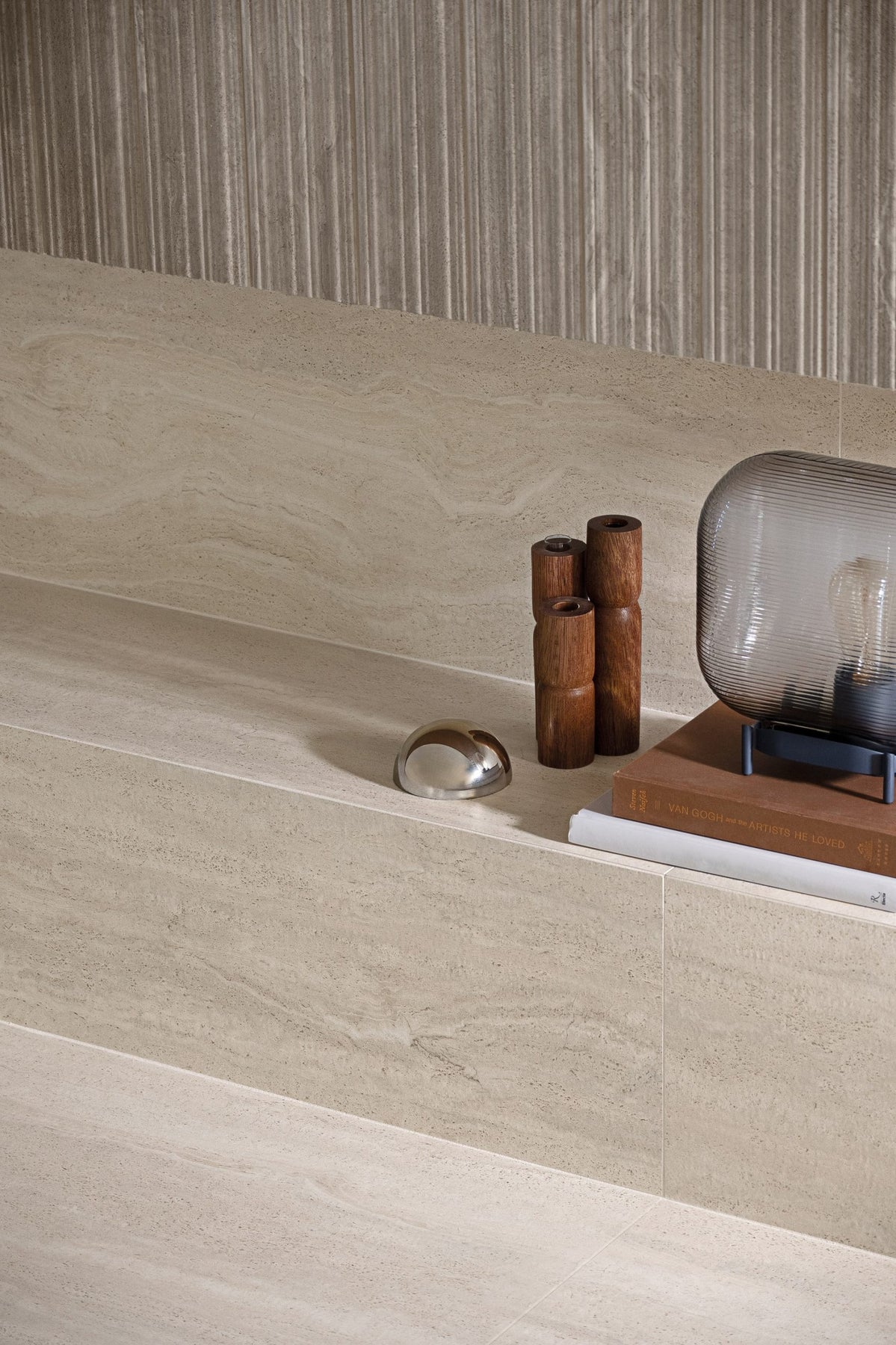 Tromba is the contemporary version of noble Travertine slabs. Although no longer available in nature, technology has materialized it into a prime resource for architecture, interior design, and furniture.