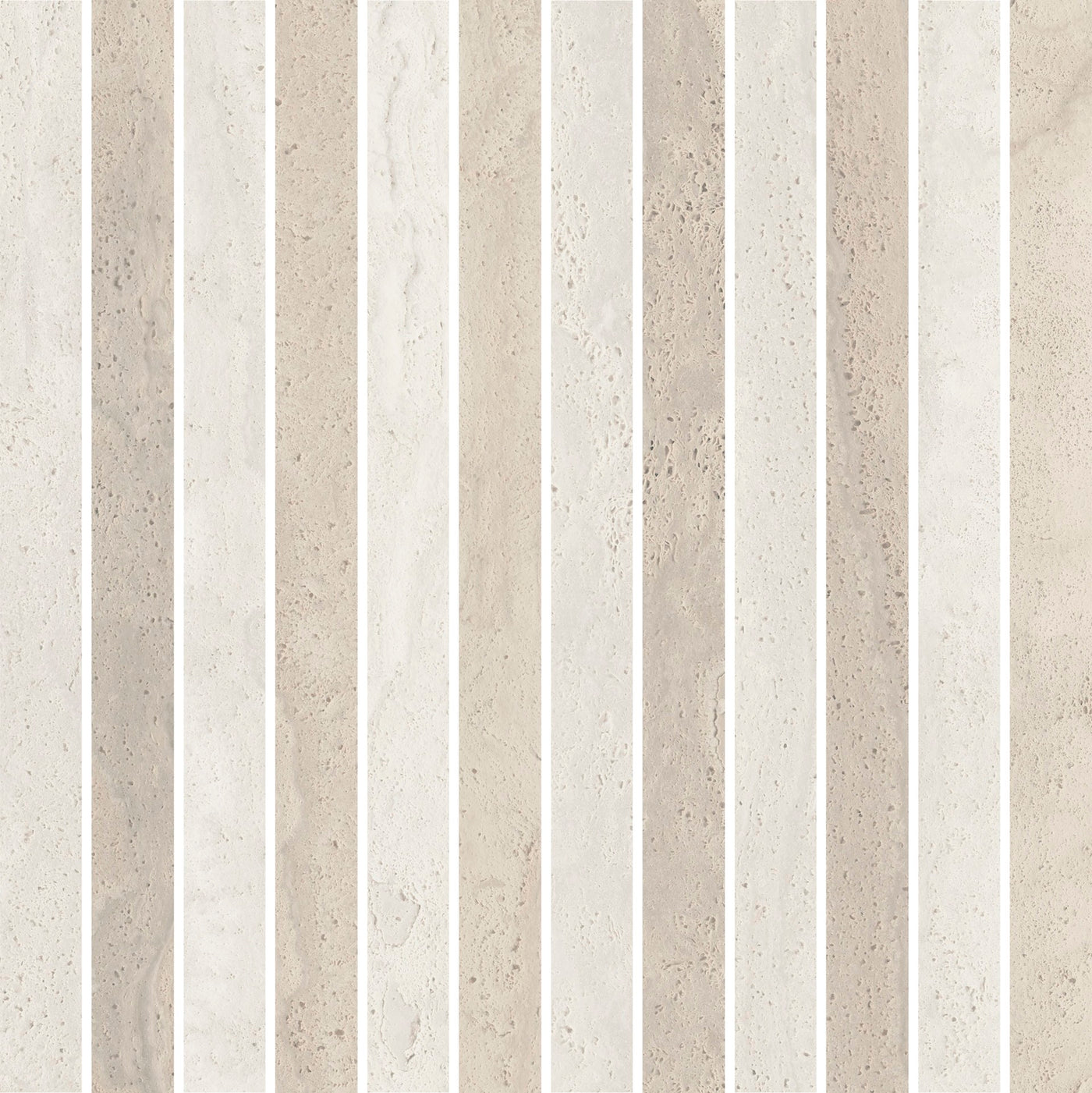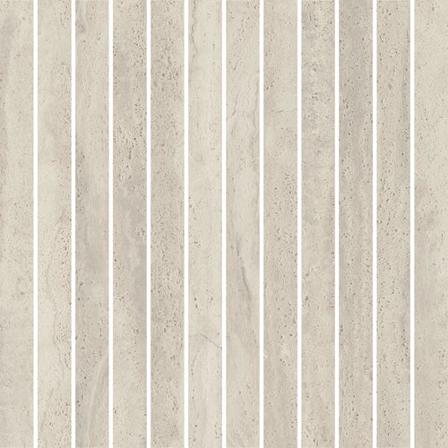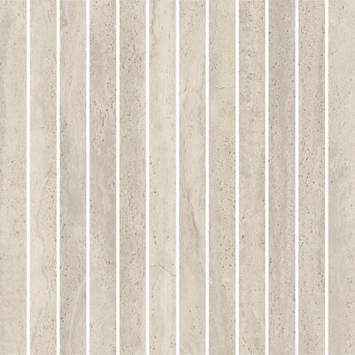 Tromba 1x12IN Mosaic is the contemporary version of noble Travertine slabs. Although no longer available in nature, technology has materialized it into a prime resource for architecture, interior design, and furniture.