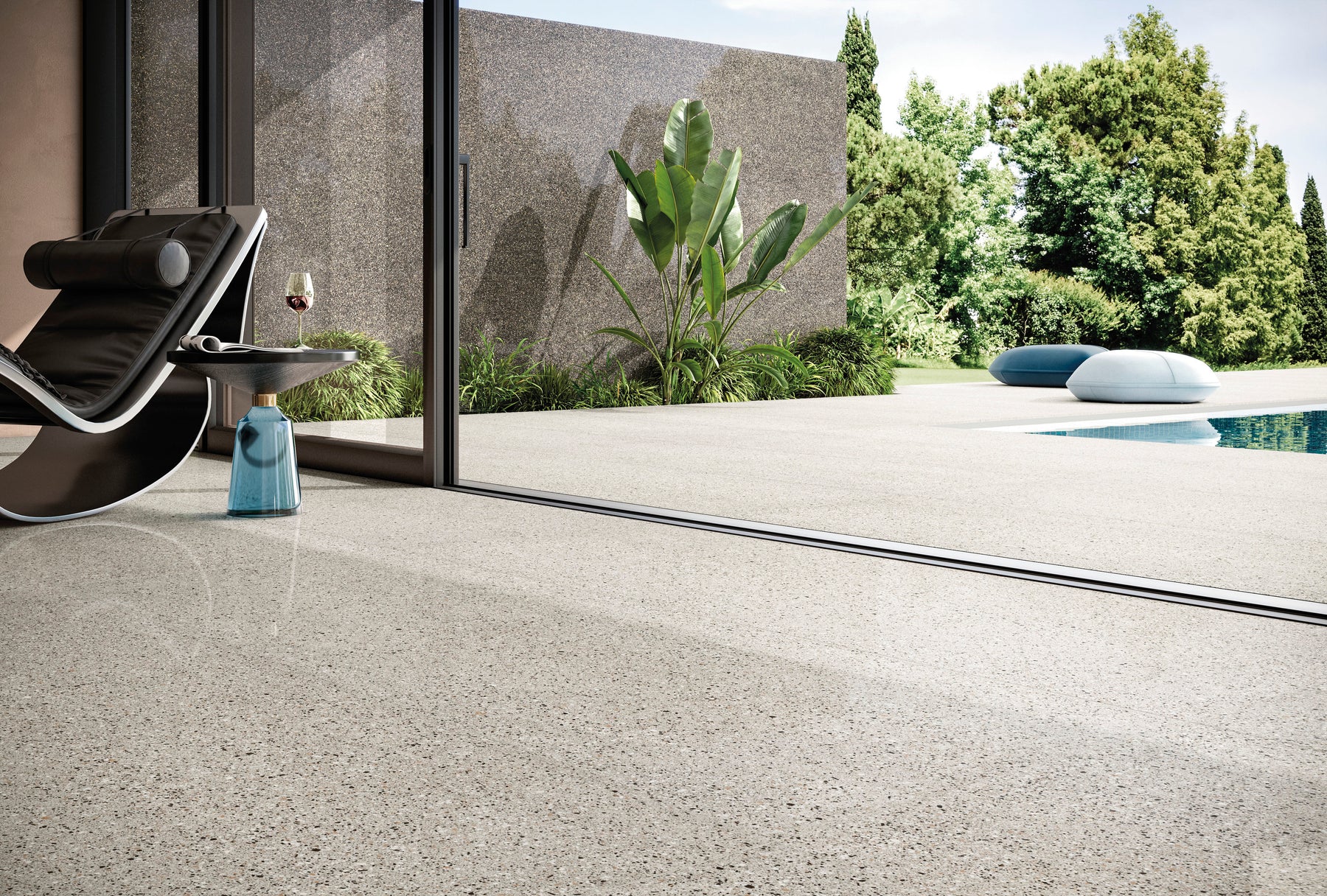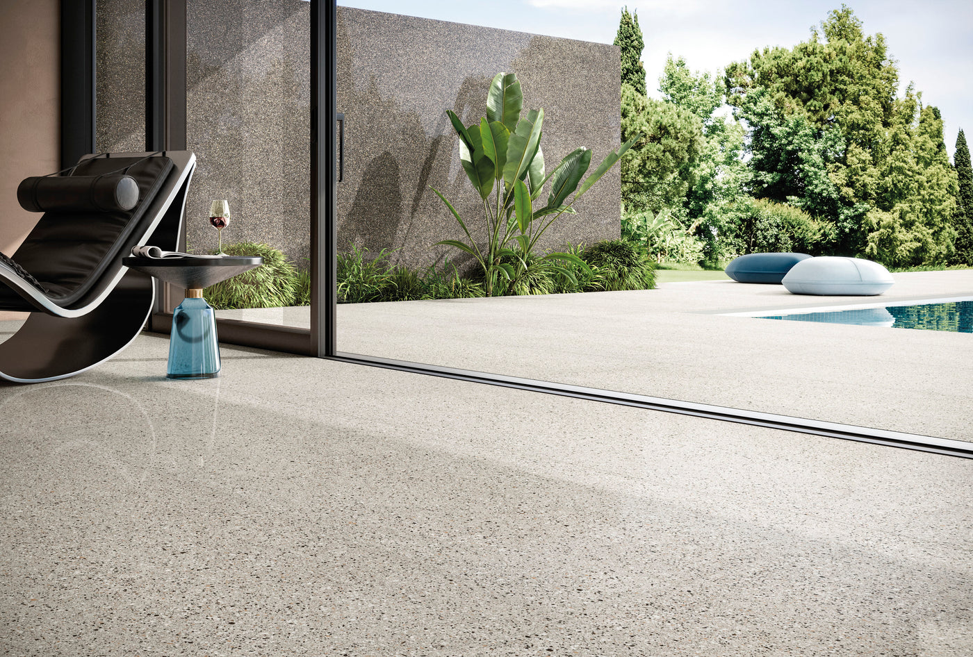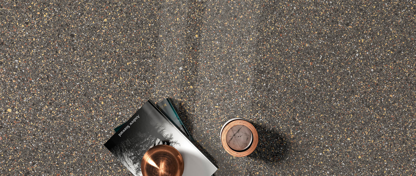A material that is homogeneous throughout. A solid material which makes no distinction between outer surface and core, made with interpenetrating mixes of different colors. Portal Lado is made exclusively from prestigious minerals and clays, extracted and worked using sustainable methods. Earth, water and fire: no solvents, resins or chemical additives. One-of-a-kind production facilities and know-how permit preparation and combination of the extraordinary variety of colored mixes and fragments that go into every Portal Lado tile. Multiple colored mixes are randomly blended to create a unique, unrepeatable mix in every slab. A system of patented technologies reproduces the randomness of nature and handmade objects. Powerful presses compact the slabs; ultra-high firing temperatures irreversibly weld and fuse the minerals to create a new material: hard, compact, impermeable, rock solid. Every single slab looks different from all the others. The distribution of the colors and grain, random and unrepeatable, composes a harmony with the unique fascination of nature and hand craftsmanship.