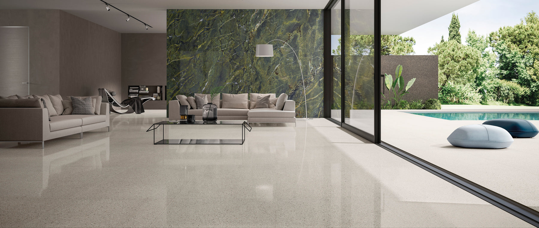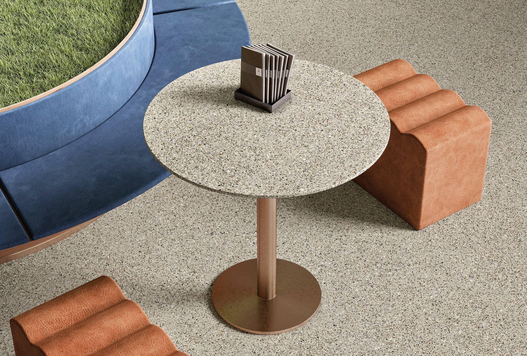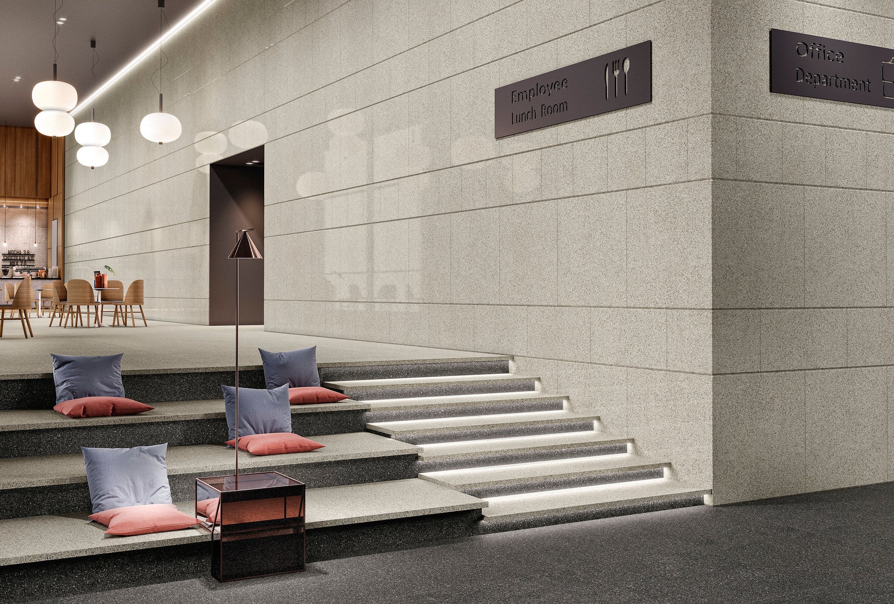 A material that is homogeneous throughout. A solid material which makes no distinction between outer surface and core, made with interpenetrating mixes of different colors. Portal Lado is made exclusively from prestigious minerals and clays, extracted and worked using sustainable methods. Earth, water and fire: no solvents, resins or chemical additives. One-of-a-kind production facilities and know-how permit preparation and combination of the extraordinary variety of colored mixes and fragments that go into every Portal Lado tile. Multiple colored mixes are randomly blended to create a unique, unrepeatable mix in every slab. A system of patented technologies reproduces the randomness of nature and handmade objects. Powerful presses compact the slabs; ultra-high firing temperatures irreversibly weld and fuse the minerals to create a new material: hard, compact, impermeable, rock solid. Every single slab looks different from all the others. The distribution of the colors and grain, random and unrepeatable, composes a harmony with the unique fascination of nature and hand craftsmanship.