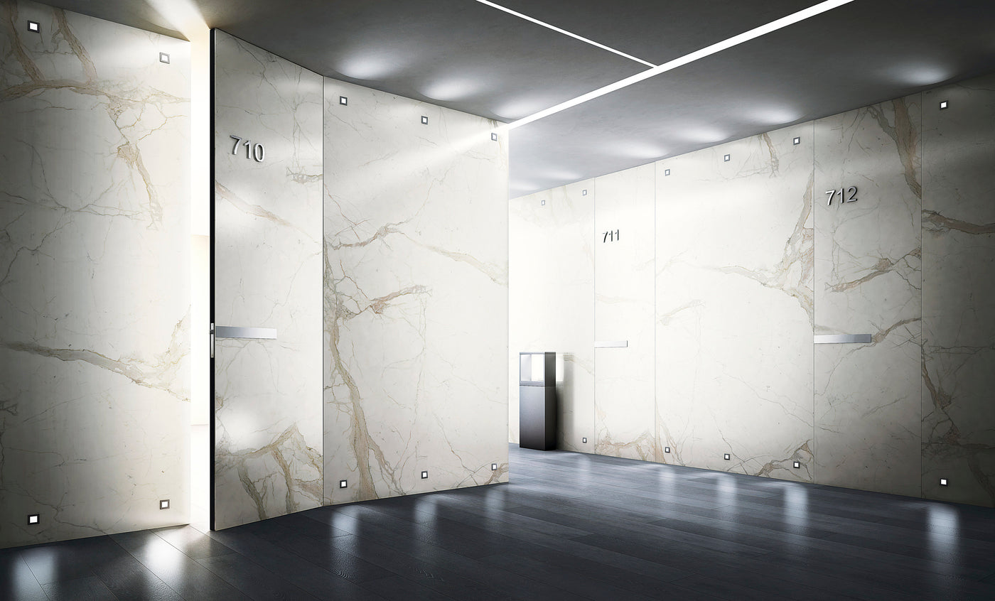 Horizon features state-of-the-art, large-format porcelain panels. These revolutionary panels combine the durable characteristics of porcelain with the beauty of a natural slab of quarried stone. Made in Italy, Horizon features a multitude of stunning colors, allowing for maximum design flexibility in both commercial and residential settings.