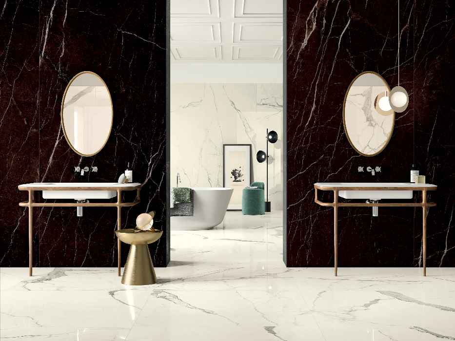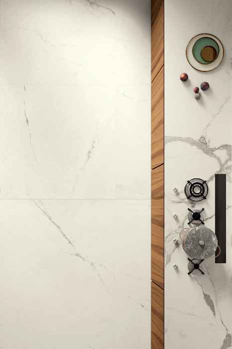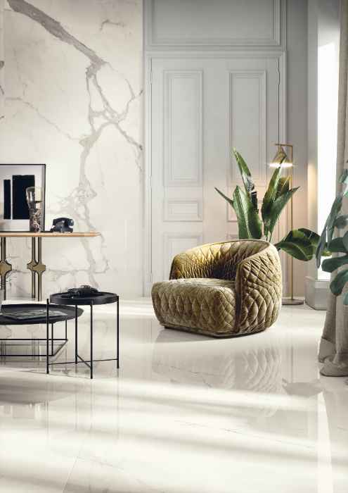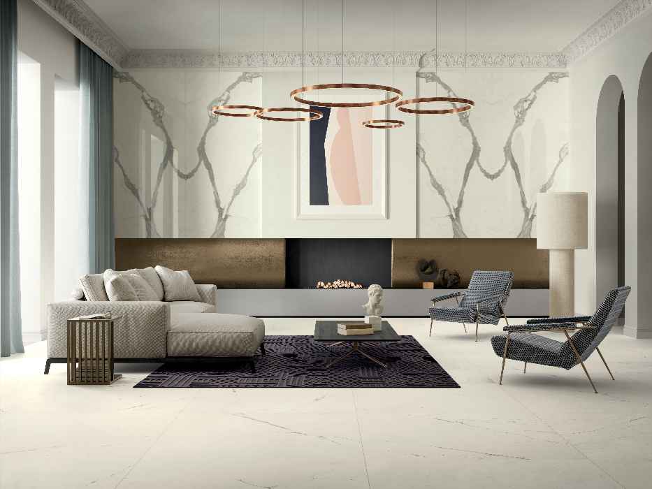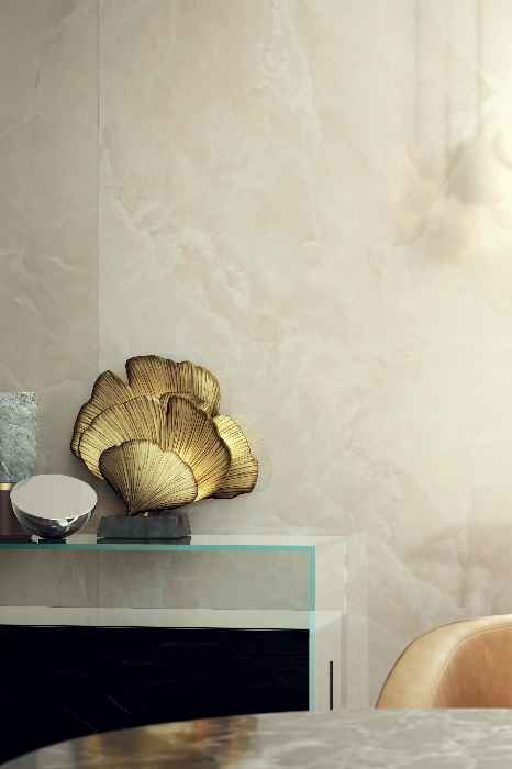 The collection offers a range of sophisticated tones and glossy or touch finishes, allowing for flexibility in architectural and interior design. Its surfaces convey a sense of lightness and clarity while maintaining the depth and richness of marble.