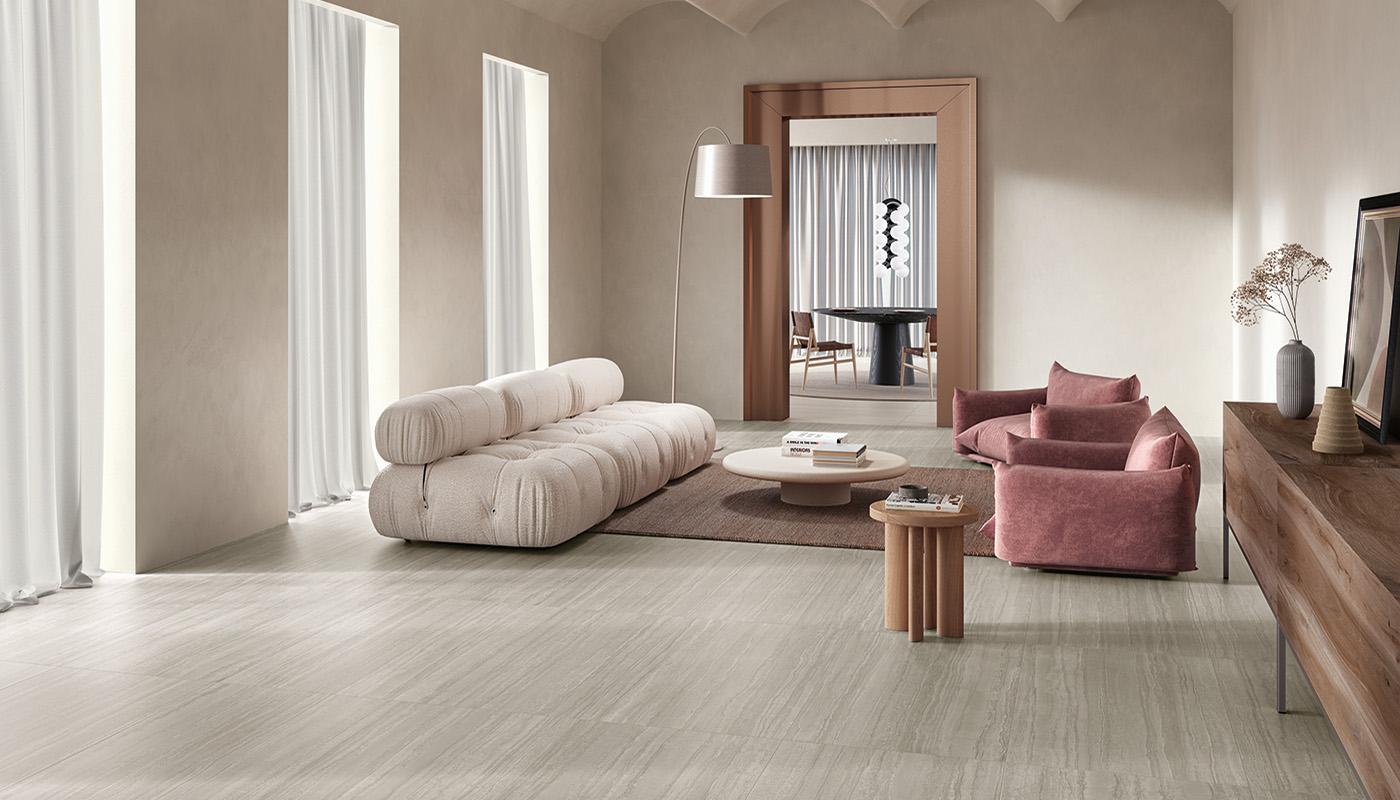 Soft, harmonious atmospheres, created through precise floor and wall combinations, become the protagonists of an exclusive story which describes the new living spaces. Large vein patterns, energetic shade nuances, and a rich variety of original details differentiate graphical textures with a high level of variability, for a visual effect which is never repetitive.