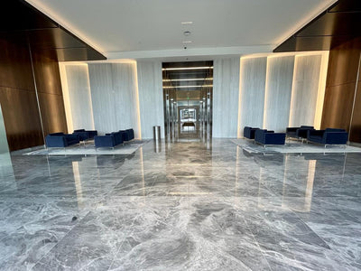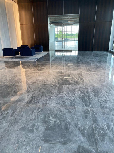 Bottega Serra is a refined Italian marble sourced from the Apuan Alps, known for its deep grey tones and soft white veining. Its cloud-like movement and subtle blue undertones create a sophisticated, modern look that adds depth to any space.